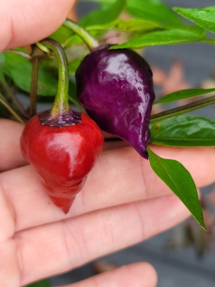 SHU 5,000 plus  Purple UFO is a strange pepper with very low heat & a mild taste of apple. This flying saucer looking pepper starts out bright purple & ripens to red.